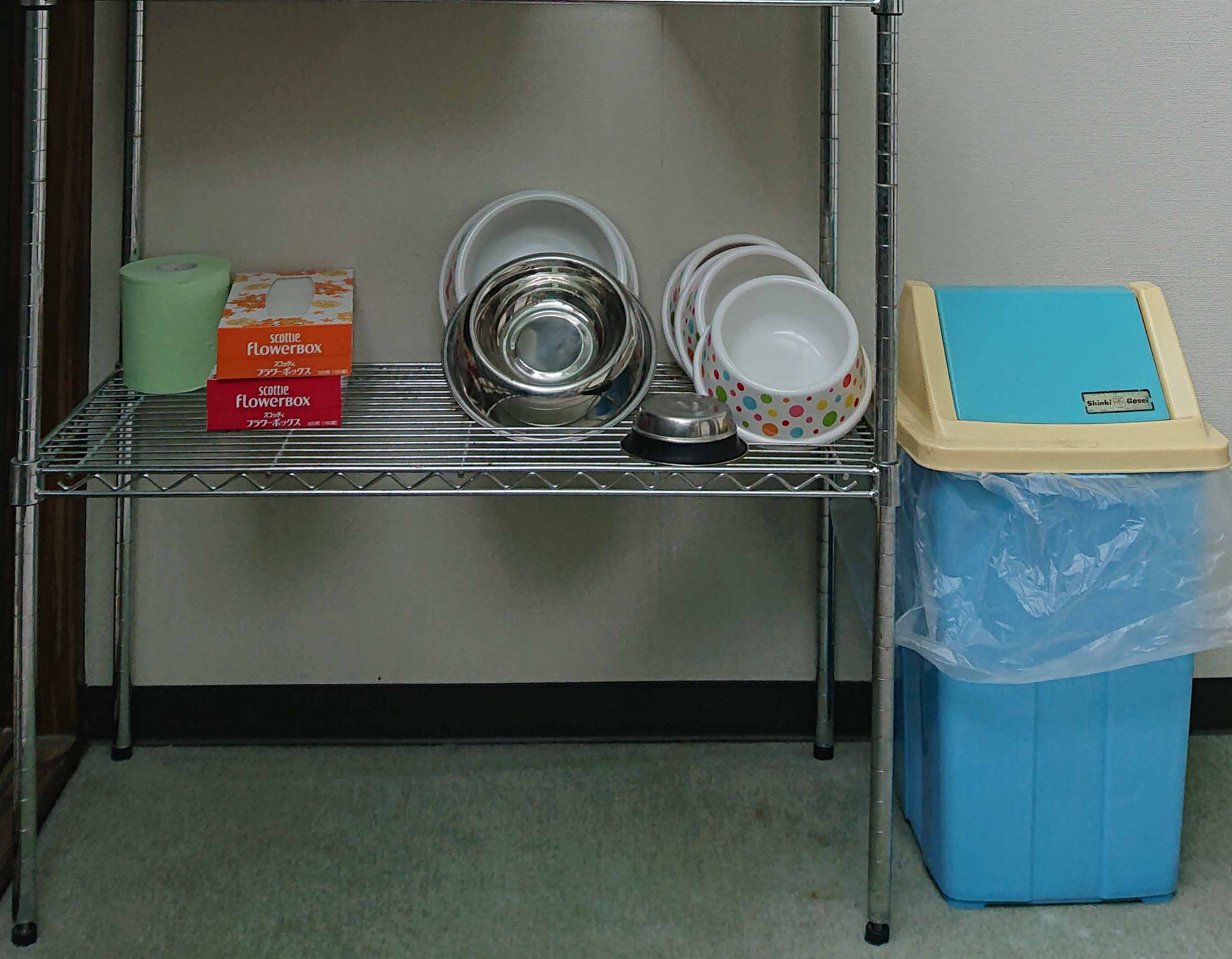 電子レンジや消臭剤,ペットシーツなど階段を上がったところに設置してあります。